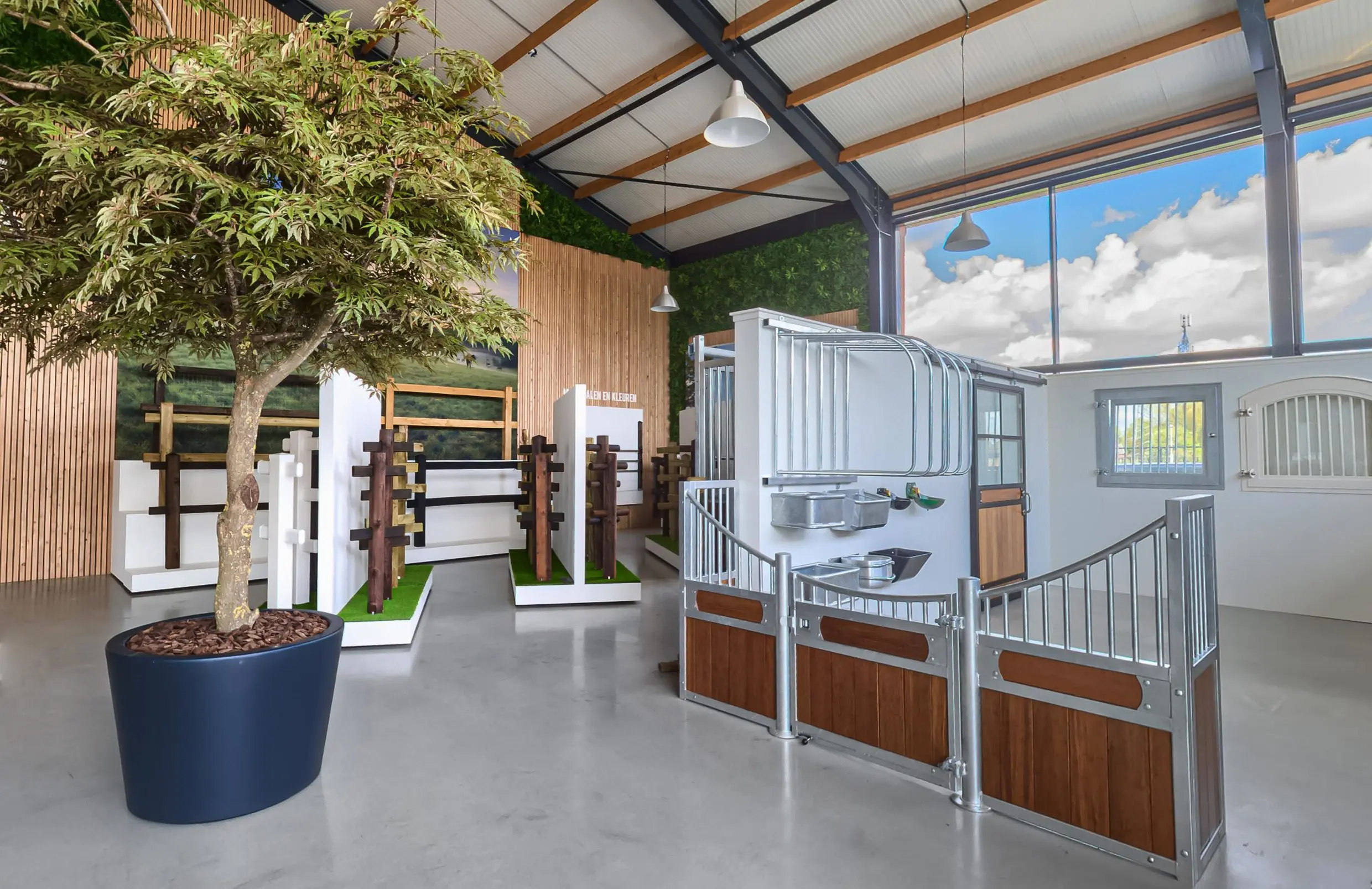 Onze showroom is af! Na de verhuizing is Rutjes paardenboxen en omheiningen gevestigd in Goor en in dit nieuwe pand is een prachtige showroom gerealiseerd. Het uitkiezen van een paardenstal en bijbehorende omheining blijft natuurlijk lastig, en daarom is het prettig om de materialen zelf te kunnen zien en voelen. Niet alleen onze omheiningen en voorwanden staan opgesteld, ook kunt u ramen, deuren en accessoires komen bekijken. Onze verkopers heten u graag van harte welkom en helpen u bij de keuze uit producten die het beste aansluiten bij uw wensen. We hopen dat we met de producten uit de showroom vele klanten kunnen inspireren.