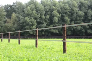 Qua omheining is er veel mogelijk voor dit concept. Wij raden, voor extra veiligheid, een houten omheining aan om het buitenste gedeelte van het land af te rasteren. Onze opschroef omheining is uiterst geschikt hiervoor. Hier kan eventueel gekozen worden voor wat langere palen om zo een hoge afrastering te creëren. Om een track, zand en gras paddocks aan te leggen, zijn omheiningen zoals, lint of permanentkabel zeer geschikt. Deze afrasteringen kunnen gecombineerd worden met een groot assortiment aan palen. Hierdoor bieden wij afrasteringen aan in elke gewenste prijsklasse.