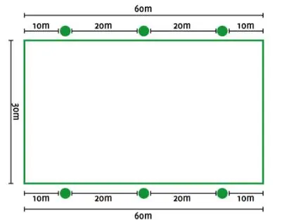 Lichtplan manege 20 x 40 voor dressuur (3 masten op de lange zijde) Lichtplan manege 20 x 40 voor dressuur en springen (2 masten op elke lange zijde) Lichtplan manege 30 x 60 voor dressuur (4 masten op de lange zijde) Lichtplan manege 30 x 60 voor dressuur en springen (3 masten op elke zijde)