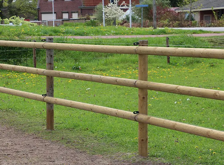 De halfronde liggers zijn eveneens gefreesd voor een strakke, egale afwerking die perfect aansluit bij de ronde weidepalen. Halfronde liggers zijn niet alleen esthetisch aantrekkelijk, maar ook veilig in het gebruik rondom dieren.