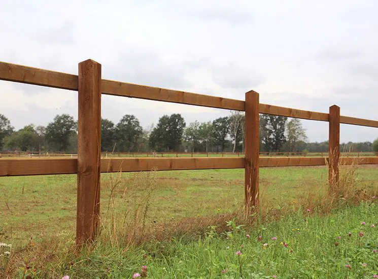 Deze klassieke houten hekwerk wordt met 2 liggers geleverd. Eveneens is deze omheining met 3 liggers verkrijgbaar. Tevens heeft u de keuze uit verschillende impregneringen voor het hout. Voor een langere levensduur is deze variant geïmpregneerd met Tanatone, dit geeft de omheining een warme bruine kleur. De paardenregels worden bij dit model op de vierkante palen geschroefd. Mede hierdoor is de omheining eenvoudig en snel te monteren.