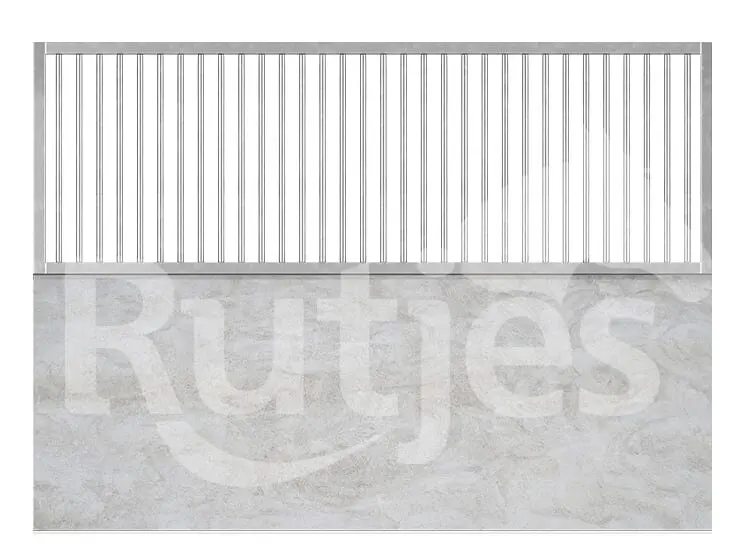 Het spijlenrek is geschikt om te bevestigen op een gemetselde tussenwand. Het rek is uitgevoerd met kokers van 50 x 50 mm en spijlen van Ø 22 mm.