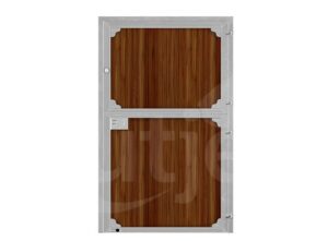 Deze staldeur solid is uitgevoerd met een boven- en onderdeur, waarbij de bovendeur onafhankelijk te openen en te sluiten is, vingerslot en nachtsluiting (onderdeur), RVS knop (bovendeur), 32 mm gecoate bamboeplanken en een inbouwmaat van 120 x 220 cm. Het kozijn heeft een hoeklijn van 65 x 100 mm en is uitgevoerd met lipjes voor een extra verstevigd kozijn.