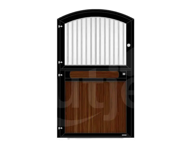 Deze hoogwaardige staldeuren zijn in alle denkbare uitvoeringen te leveren, van groot tot klein van standaard tot luxe. De staldeuren kunnen volledig naar eigen wensen aangepast worden. Deze staldeur is uitgevoerd met;