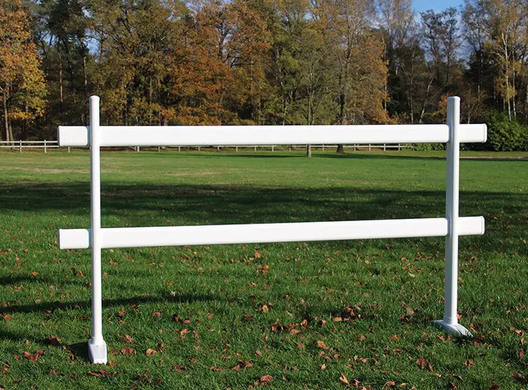 In onze kunststof lijn hebben we naast de permanent te plaatsen omheining ook een verplaatsbaar hekwerk. Dit hekwerk is ideaal om de rijbaan op te splitsen of om vrijspringen mogelijk te maken. Het afzethek heeft, mede door de afgeronde liggers en staanders, een luxe uitstraling en kan goed gebruikt worden als extra sponsor mogelijkheid tijdens wedstrijden. De hekken kunnen snel worden gemonteerd en zijn eenvoudig te verplaatsen.