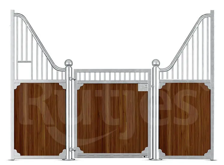 De luxe voorwand “Oxford” leveren wij uit voorraad in 2 standaard maten voor een snelle levering. De “Oxford” paardenbox is een scherp geprijsde luxe voorwand met een prachtig open design voor meer vrijheid voor de paarden en stimuleert het onderlinge contact. Veiligheid en functionaliteit staan bij het ontwikkelen van deze wanden voorop.