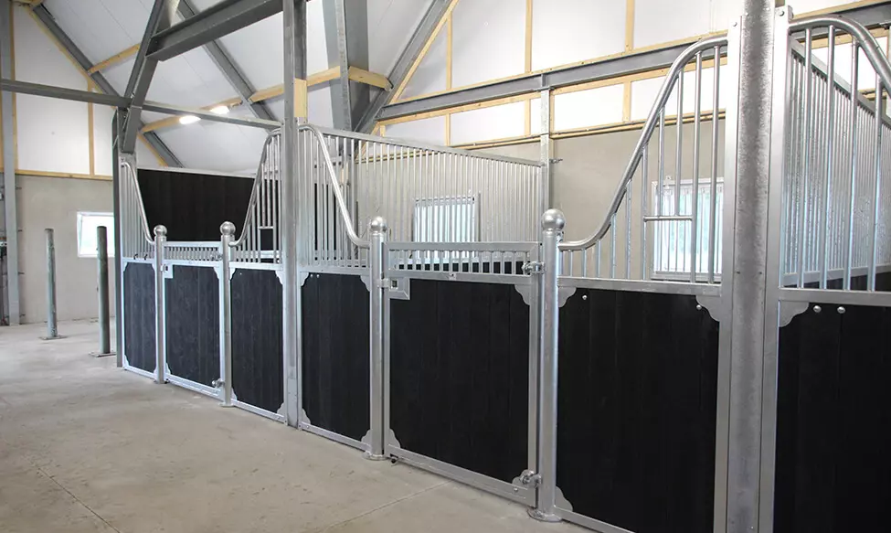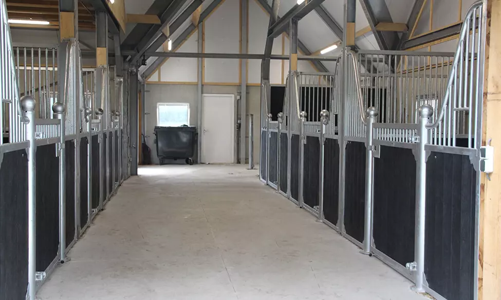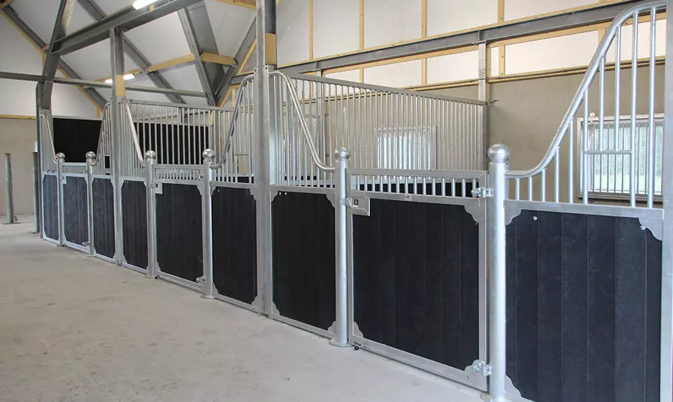 In een schitterende schuur in de achterhoek hebben wij deze voorraad stalwanden mogen monteren. De stalwanden hebben wij voor dit project iets aan moeten passen, maar normaal leveren wij deze wanden uit voorraad in twee standaard maten. De voorwanden zijn gecombineerd met onze “combi” tussenwanden. De tussenwanden zijn voorzien van kunststof planken en spijlen. Dit zorgt voor een mooi open en licht geheel, zeker in combinatie met de gebogen voorwanden. Tevens hebben we hier de ramen voorzien van op maat gemaakte raambescherming en hebben we wasplaats palen geleverd.